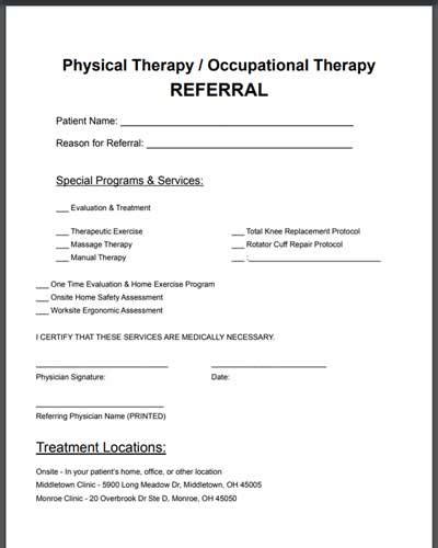 Download physical therapy referral pad template Reader